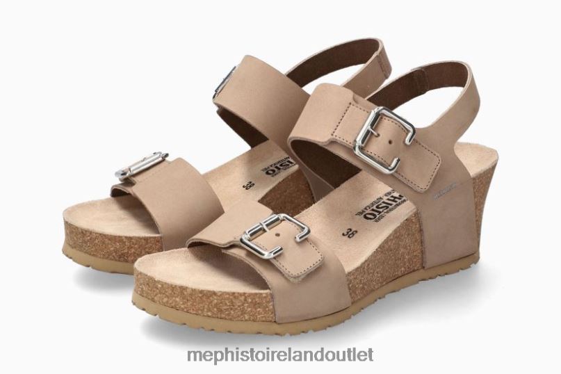 MEPHISTO LISSANDRA | Women Cork Sandals Beige Leather Nubuck. This lightweight ladies’ sandal is a must for a relaxed summer. The SOFT-AIR cork sole minimises impact for a gentle, effortless walk. The AIR-RELAX technology respects the anatomy of the foot to prevent fallen arches. The adjustable adhesive straps, with decorative buckles, ensure perfect comfort and an exceptional fit.